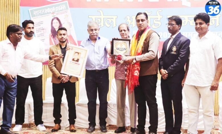कवर्धा। भोपाल से प्रकाशित खेल पत्रिका ‘नेशनल स्पोर्ट्स टाइम्स’ के 30वें खेल अवार्ड सम्मान समारोह में नगर के खेल कमेंटेटर व समीक्षक नितेश छाबड़ा को भी सम्मानित किया गया। यह समारोह 25 सितंबर को भोपाल के अपेक्स बैंक समन्वय भवन सभागार में आयोजित किया गया था। भोपाल के विधायक भगवान दास सबनानी मुख्य अतिथि थे। महापौर मालती राय, अंतरराष्ट्रीय कमेंटेटर सुशील दोषी, हॉकी खिलाड़ी विवेक सागर प्रसाद व शिवेंद्र सिंह, अंतरराष्ट्रीय गायक साईं राम अय्यर, स्पोर्ट्स प्रमोटर एएस सिंहदेव एवं